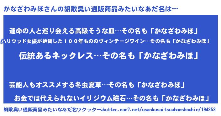 | 意味不明あだ名 | 『とにかく怪しいかなざわみほ』 |