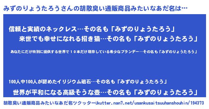 | 意味不明あだ名 | 『住所不定無職みずのりょうたろう(79歳)』 |
