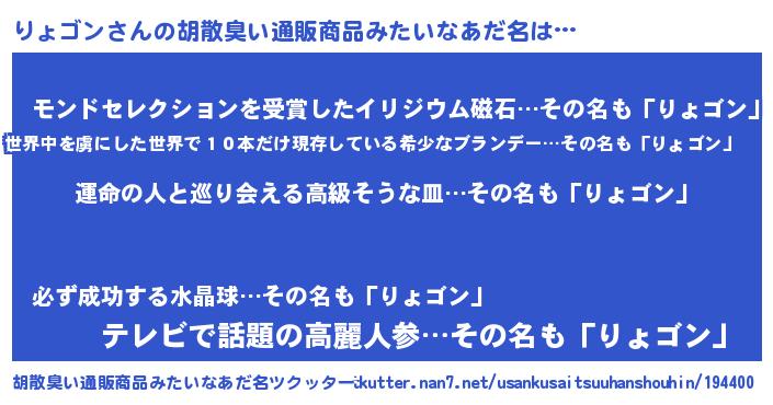 | 意味不明あだ名 | 『りょゴンフォーエバー』『自称りょゴン』 |