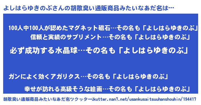 | 男性向けラノベタイトル風あだ名 | 『よしはらゆきのぶの憂鬱』 |