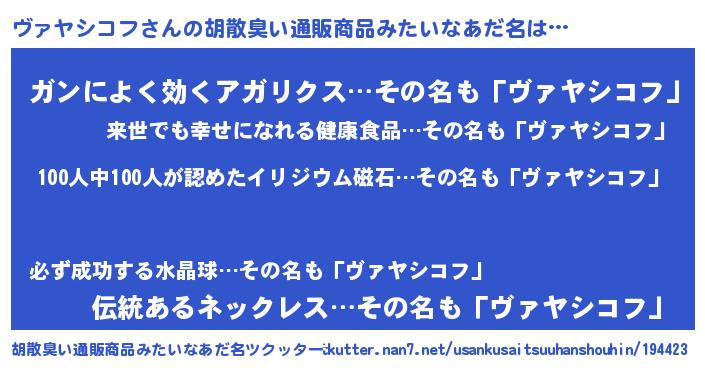 | ヘコむあだ名 | 『ヴァ太郎』『ヴァヤシコフ(爆)』 |