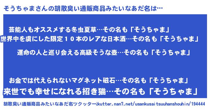 | 意味不明あだ名 | 『そうちゃまフォーエバー』 |