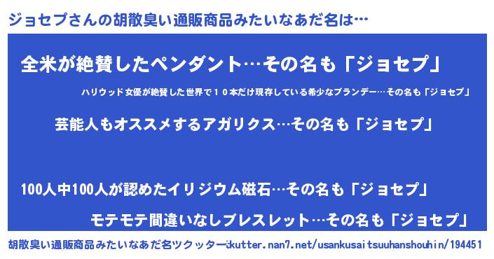 | 意味不明あだ名 | 『自称ジョセプ』『ペロリンジョセプ』 |