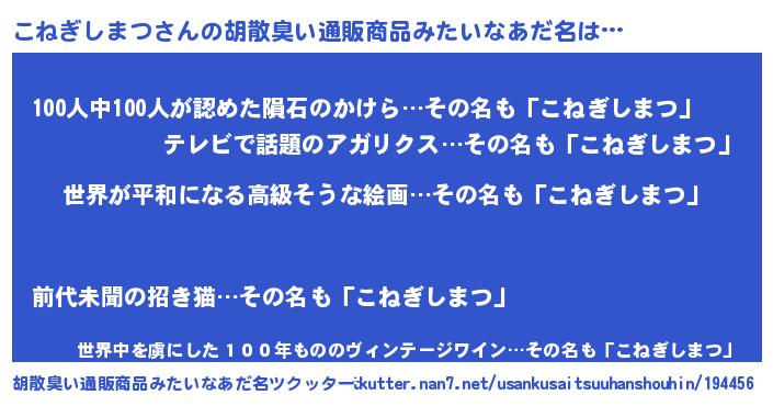 | 意味不明あだ名 | 『こねぎしまつフォーエバー』 |