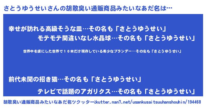 | 男性向けラノベタイトル風あだ名 | 『転生したらさとうゆうせいだった件』 |