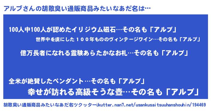 | ヒーロー風カッコイイあだ名 | 『スーパーアルブ』『愛の使者アルブ』 |