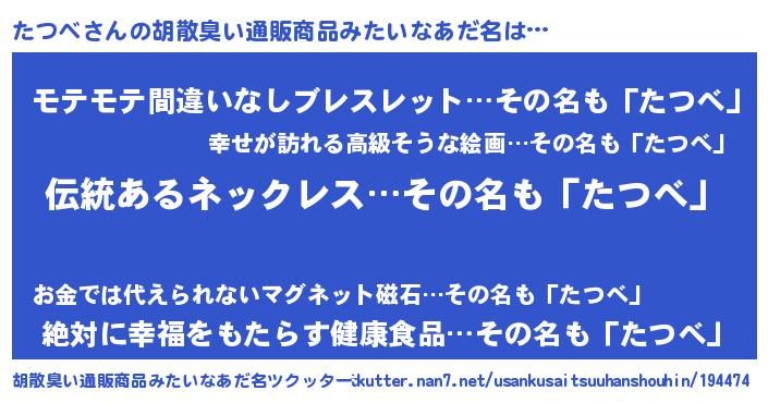 意味不明あだ名 | 『なめこ科たつべ属』『ペロリンたつべ』 |