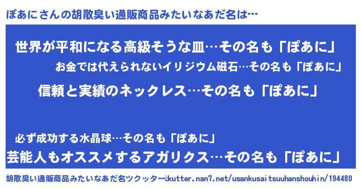 | 女子向けラノベタイトル風あだ名 | 『ぽあには平凡を望む』『闇のぽあに』 |