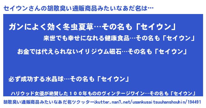| ヒーロー風カッコイイあだ名 | 『慈愛の使者セイウン』『仮面セイダー』 |