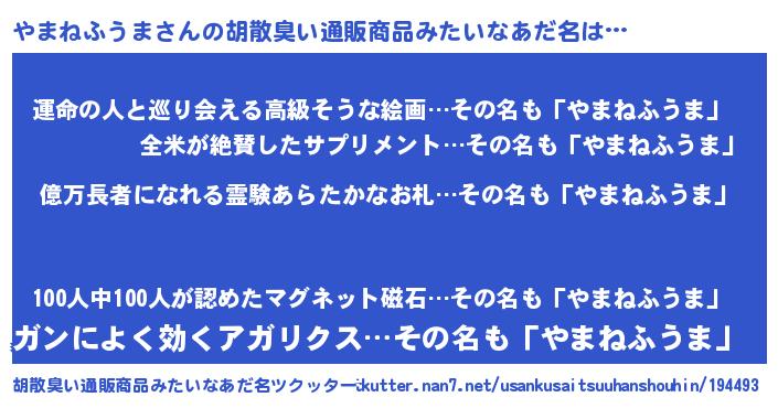 やまねふうまさんの胡散臭い通販商品みたいなあだ名をツクッター!