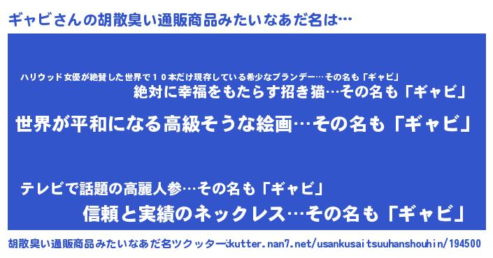 | 意味不明あだ名 | 『ギャビフォーエバー』『永久保存ギャビ』 |