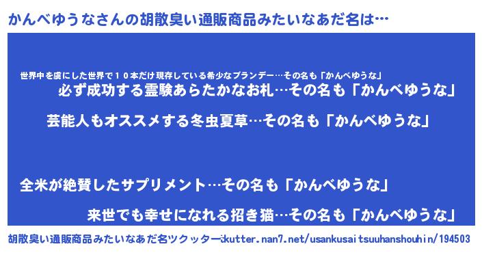 | 恥ずかしいあだ名 | 『カンベユウナデラックス』『かんちん』 |