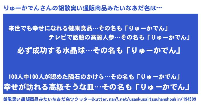 | ヘコむあだ名 | 『りゅにゅー』『りゅーかでん(笑)』 |