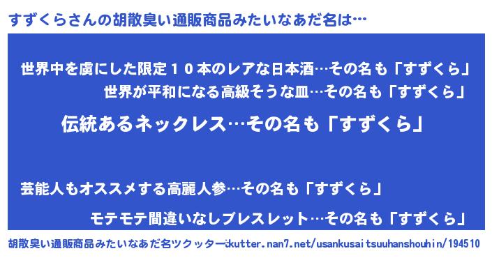 | 意味不明あだ名 | 『とにかく怪しいすずくら』 |