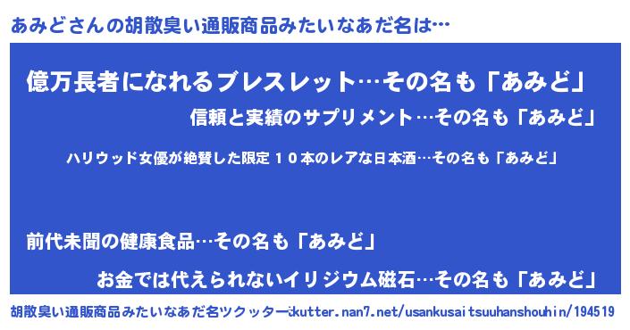| 意味不明あだ名 | 『住所不定無職あみど(56歳)』 |
