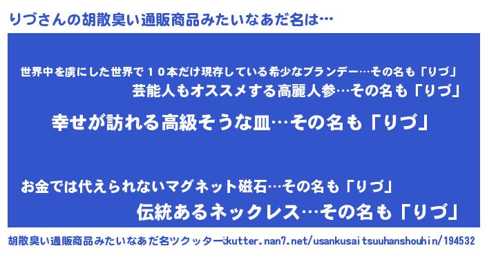 | ヘコむあだ名 | 『牛乳』『りづっちょ』『りづ(笑)』 |