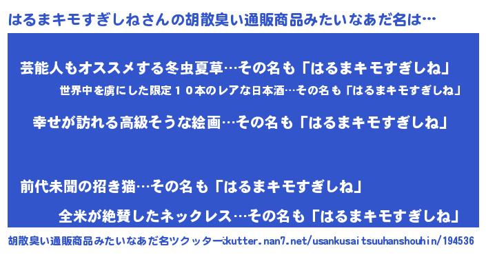 はるまキモすぎしねさんの胡散臭い通販商品みたいなあだ名をツクッター!