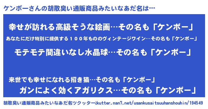 | ヘコむあだ名 | 『ケンにゅー』『牛乳』『ケン太郎』 |