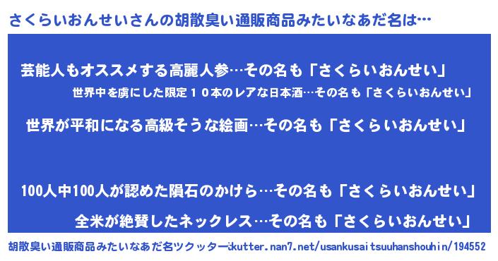 | 欧米人風あだ名 | 『さくらいおんせいクリステル』 |