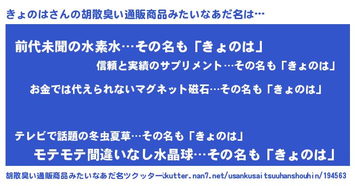 | ヘコむあだ名 | 『きょのは(笑)』『きょっふぃ~』 |