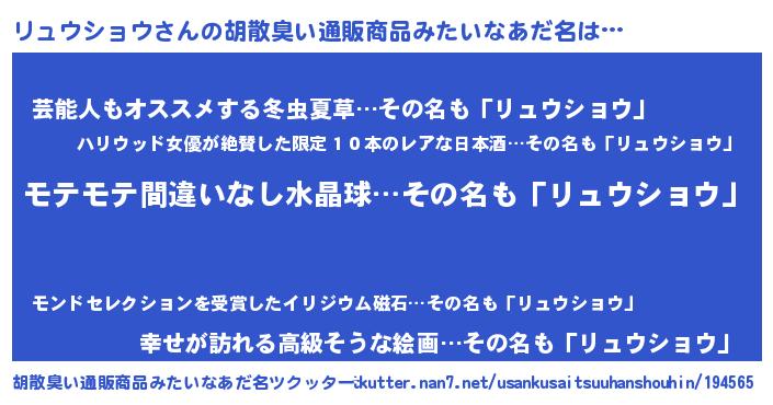 | 男性向けラノベタイトル風あだ名 | 『リュウショウアートオンライン』 |