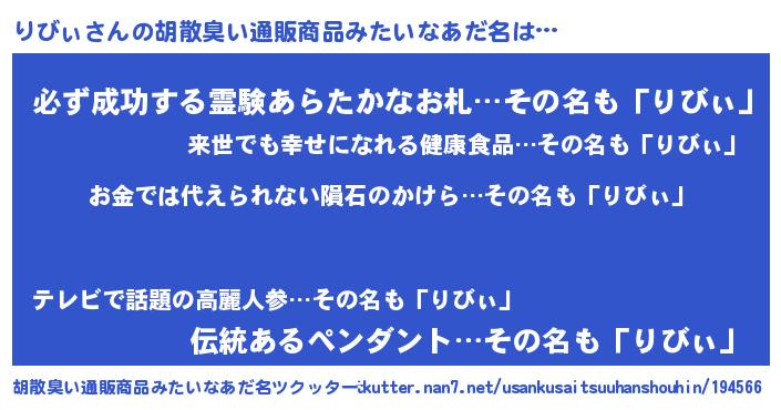 | ヒーロー風カッコイイあだ名 | 『愛の使者りびぃ』『スーパーリビィ』 |