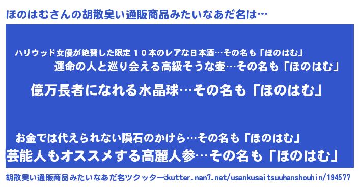 | ヘコむあだ名 | 『ほのにゅー』『レバニラ』 |