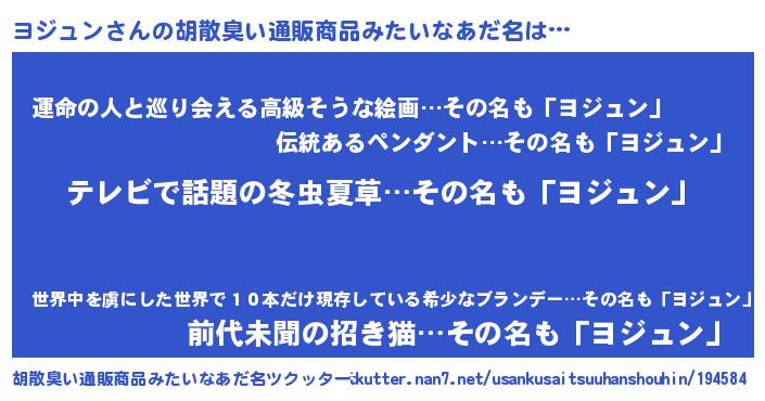 | 意味不明あだ名 | 『自称ヨジュン』『ヨジュンフォーエバー』 |