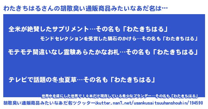 | 恥ずかしいあだ名 | 『プリティーわたきちはる』『わたっちょ』 |