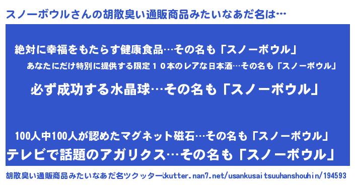 | ヘコむあだ名 | 『スノもー』『スノーボウル(笑)』 |