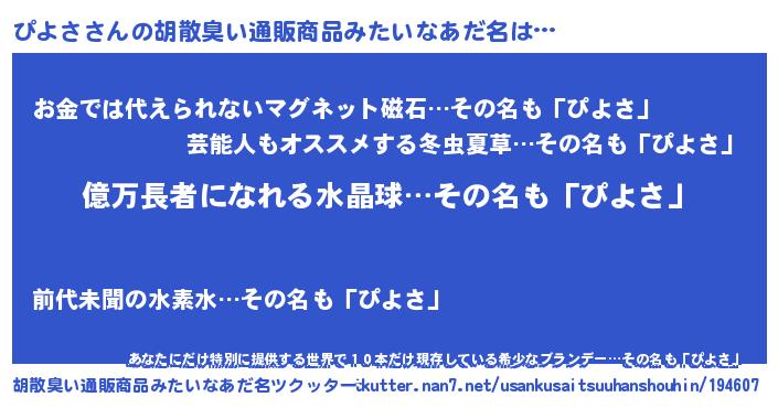 | ヒーロー風カッコイイあだ名 | 『スーパーピヨサ』『愛の使者ぴよさ』 |