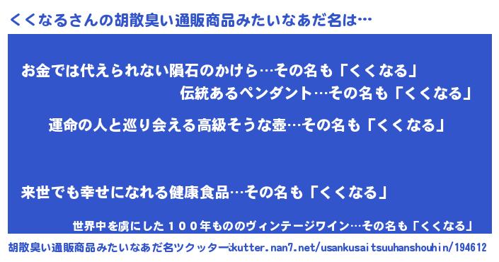 | 意味不明あだ名 | 『くくなるフォーエバー』 |
