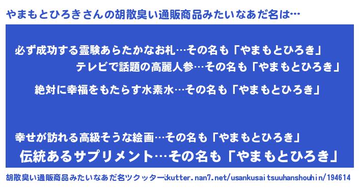 | ヘコむあだ名 | 『やまもとひろき(震え声)』『やまにー』 |
