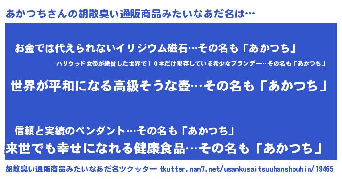 | ヘコむあだ名 | 『豆乳』『あかつち(笑)』『あかっぺ』 |