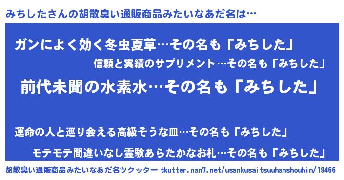 みちしたさんの胡散臭い通販商品みたいなあだ名をツクッター!