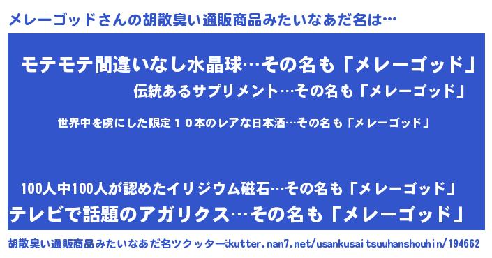| ヒーロー風カッコイイあだ名 | 『仮面メレダー』『スーパーメレーゴッド』 |