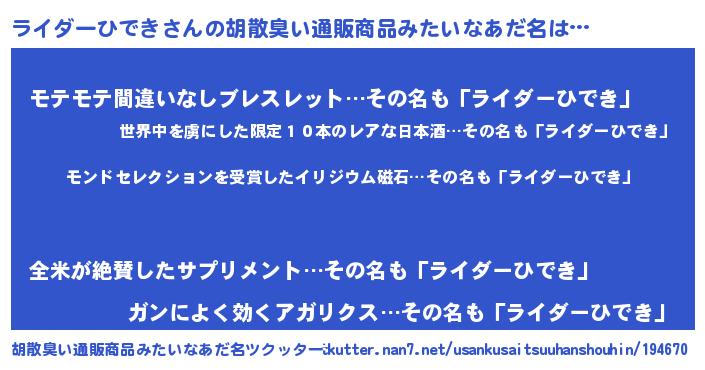 | 伝説のあだ名 | 『救世主となる占い師ライダーひでき』 |