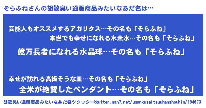 | 意味不明あだ名 | 『ペロリンそらふね』『自称そらふね』 |