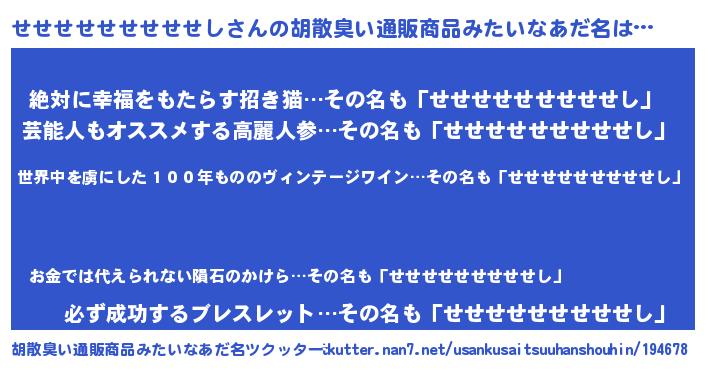| 意味不明あだ名 | 『住所不定無職せせせせせせせせせし(10歳)』 |