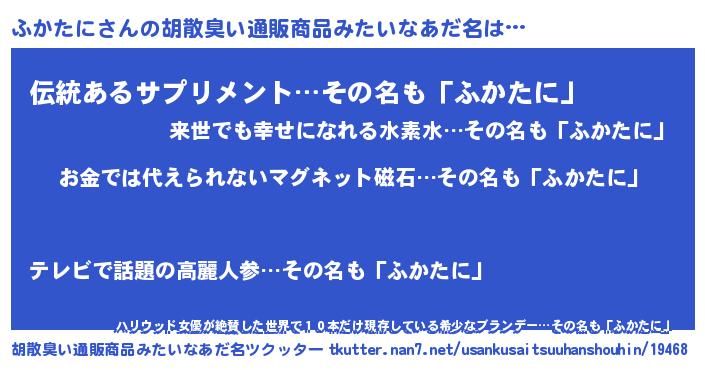 | ヘコむあだ名 | 『ふかを』『ふかたに(笑)』 |