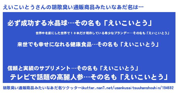 | 意味不明あだ名 | 『永久保存えいこいとう』 |