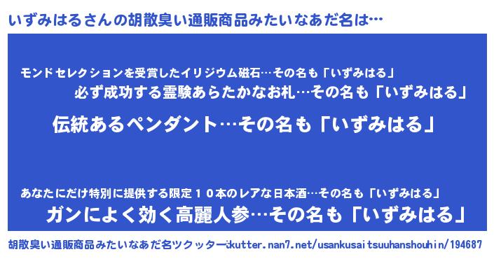 | ヘコむあだ名 | 『いずぷりん』『いずもー』 |