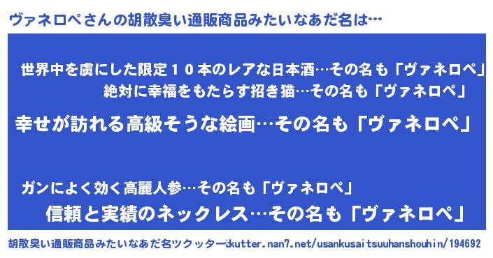 | 欧米人風あだ名 | 『ヴァネロペクリステル』 |