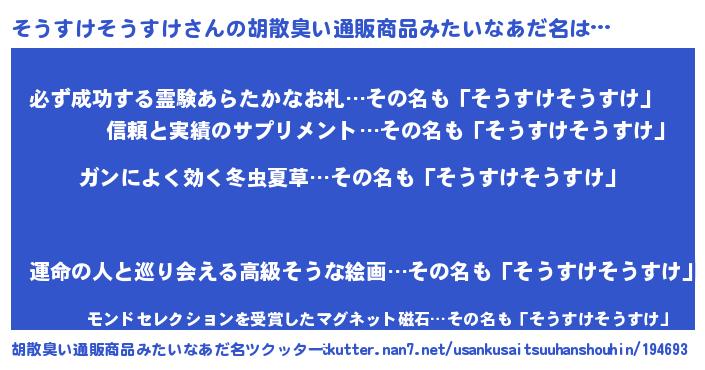 | 伝説のあだ名 | 『伝説のスナイパーそうすけそうすけ』 |