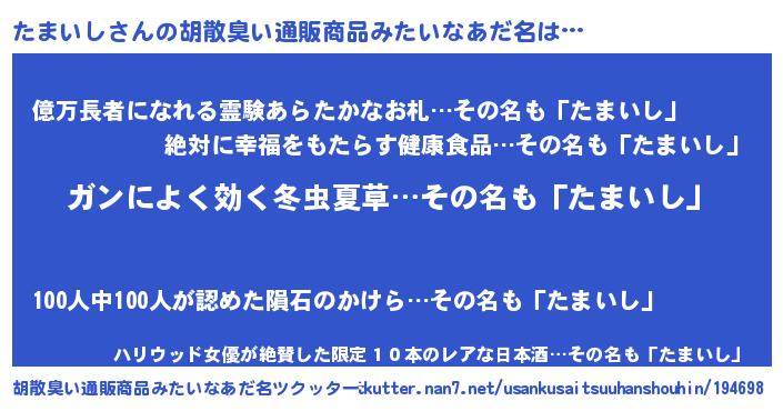 | ヒーロー風カッコイイあだ名 | 『ウルトラ戦士タマイシ』『仮面タマダー』 |