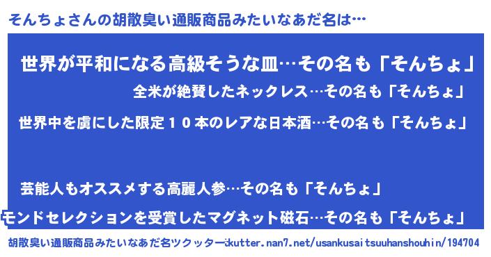 | 欧米人風あだ名 | 『アンジェラ・そんちょ』 |