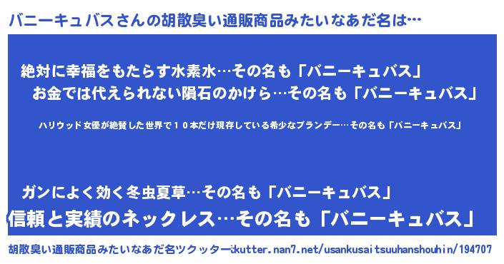 | 意味不明あだ名 | 『住所不定無職バニーキュバス(74歳)』 |