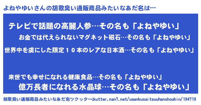 | 意味不明あだ名 | 『住所不定無職よねやゆい(43歳)』 |
