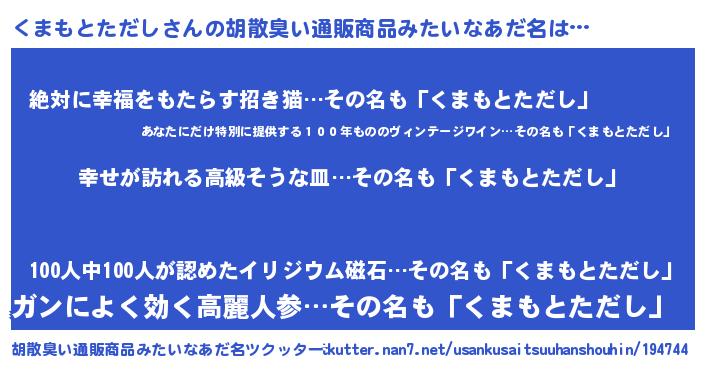| 肩書あだ名 | 『くまもとただし上級大将』 |