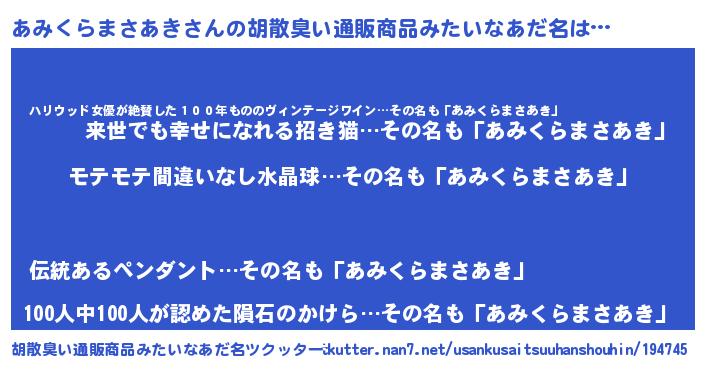 | 男性向けラノベタイトル風あだ名 | 『アミクラマサアキアートオンライン』 |